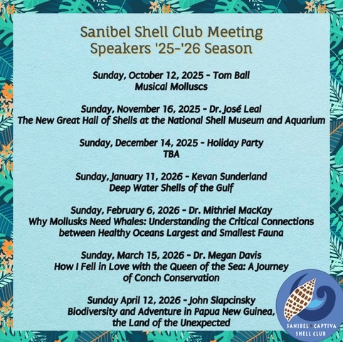 The Fall schedule will be available soon. While you’re waiting, follow us on Facebook at Sanibel Shell Club.