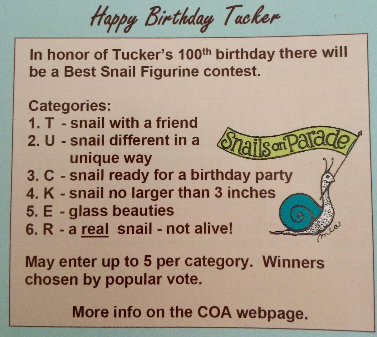 Once it’s available, we’ll post details and registration info for Conchologists of America 2019 convention to be held at South Seas Island Resort on Captiva, but meanwhile it’s not too early to be thinking about the “Snails on Parade” Best Snail Figurine Contest.