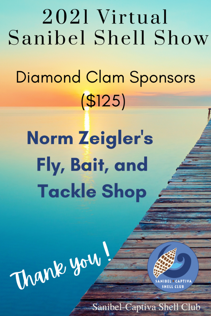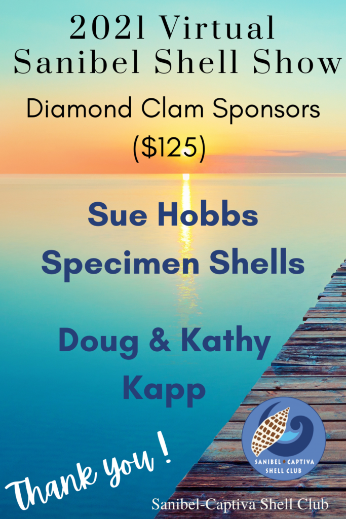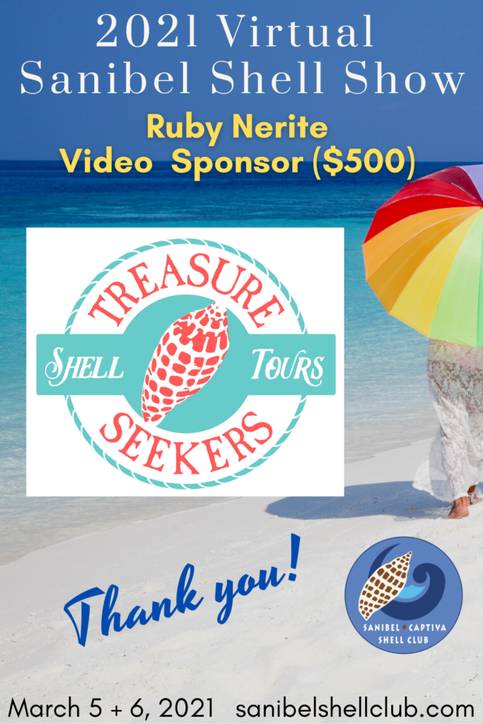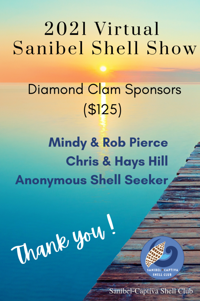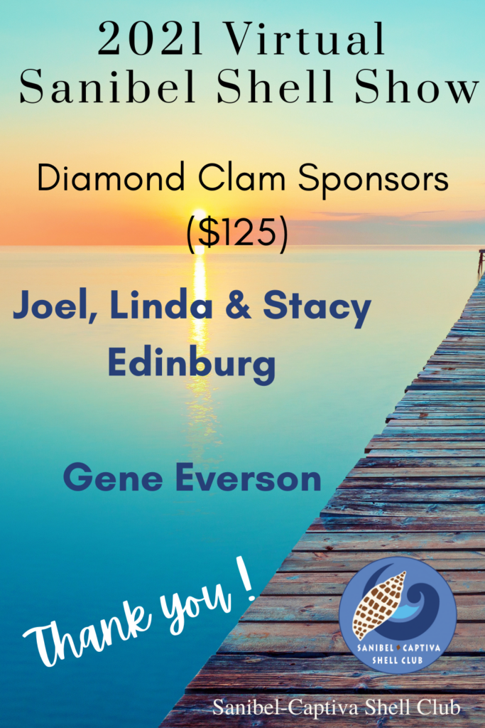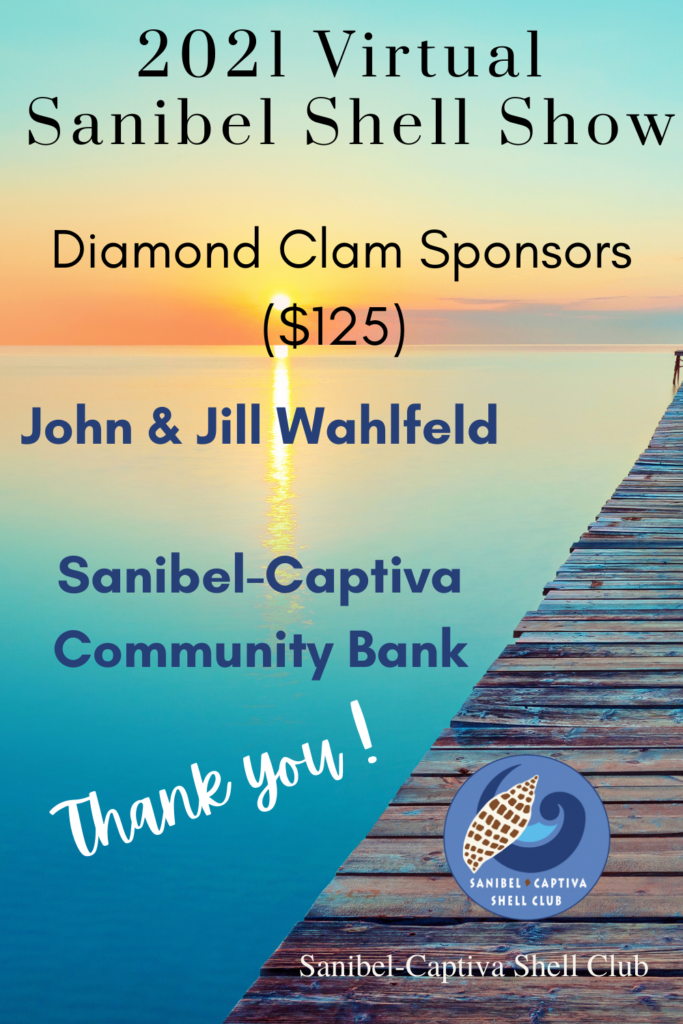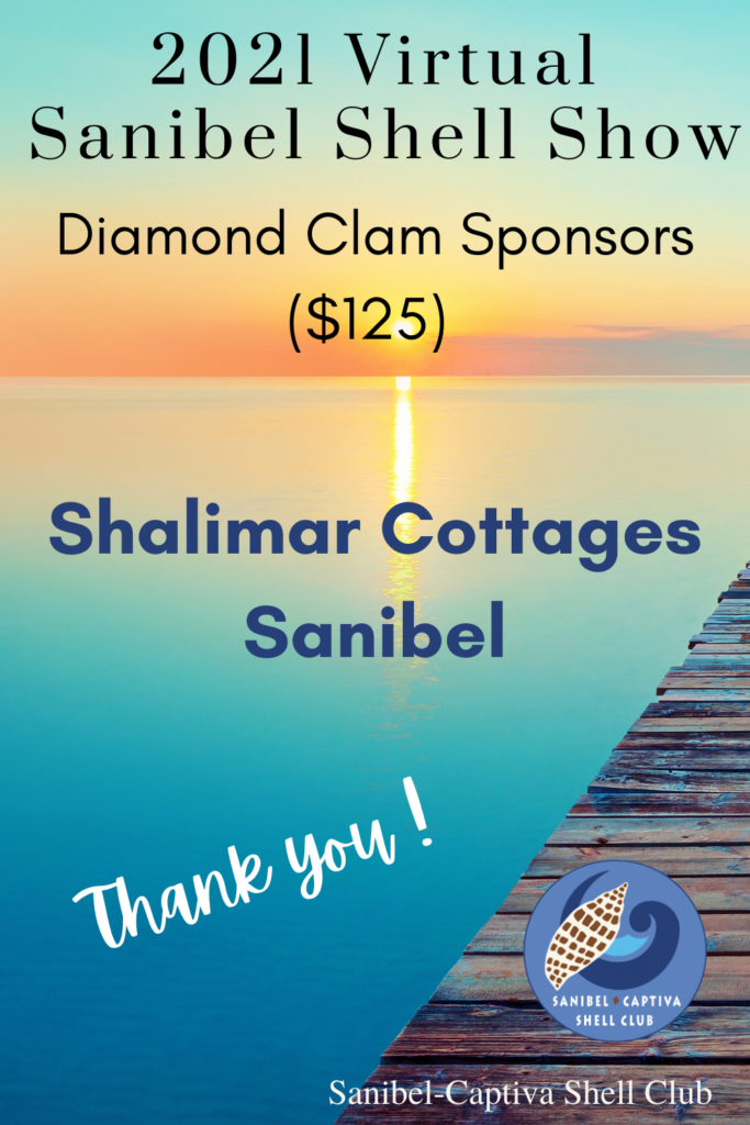 The Virtual 2021 Sanibel Shell Show will be March 5+6, 2021 on our club’s YouTube channel. THANKS SO MUCH to these generous and loyal sponsors!