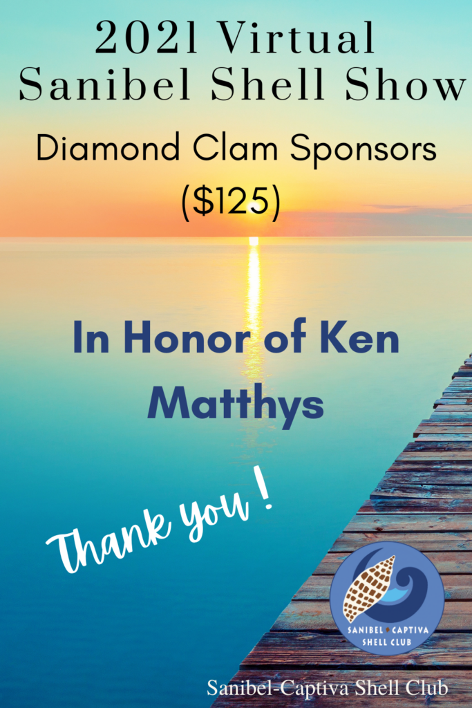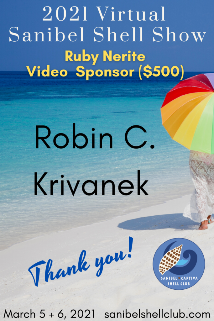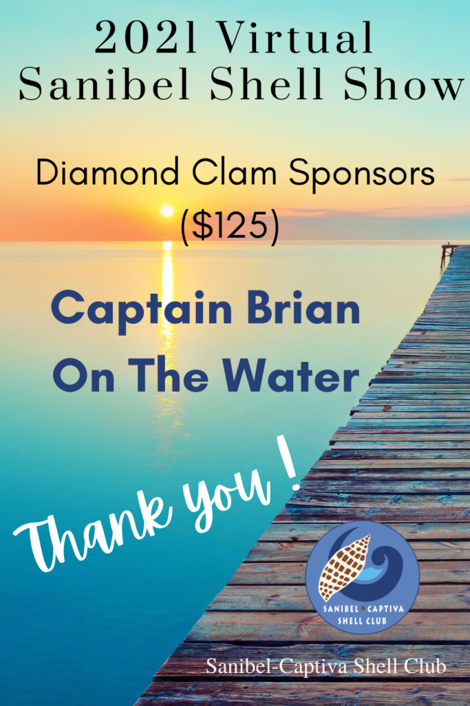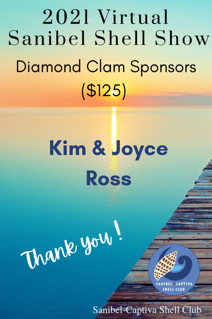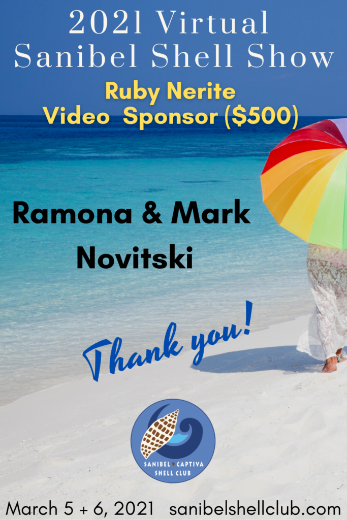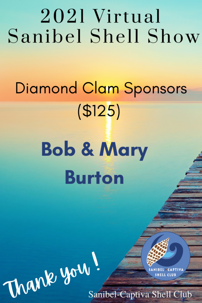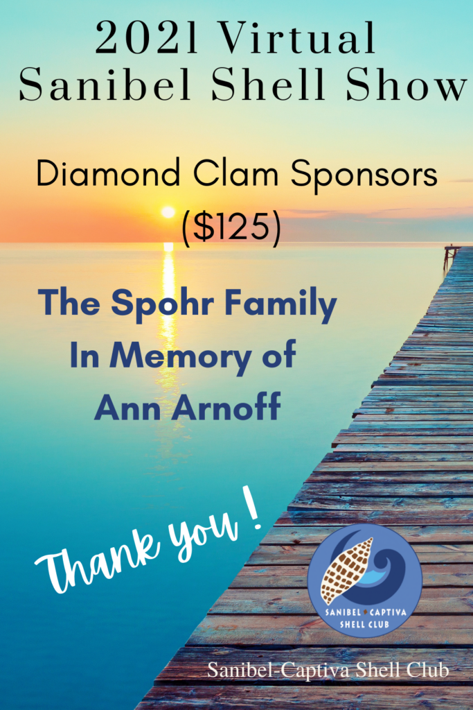The Virtual 2021 Sanibel Shell Show will be March 5+6, 2021 on our club’s YouTube channel. THANKS SO MUCH to these generous and loyal sponsors!