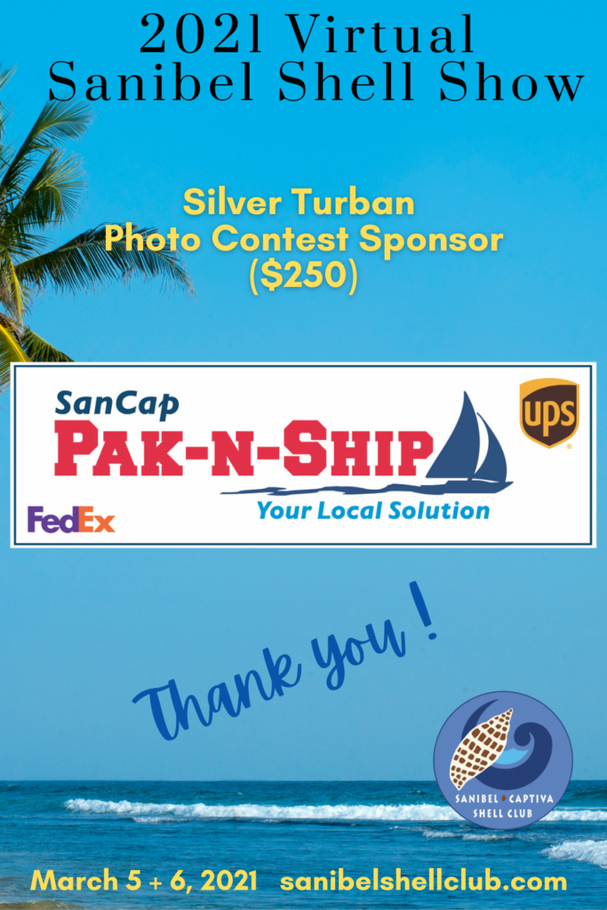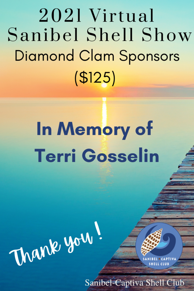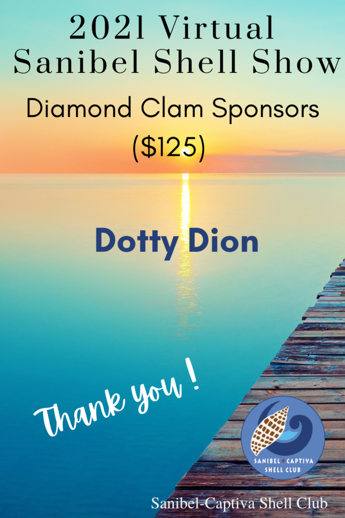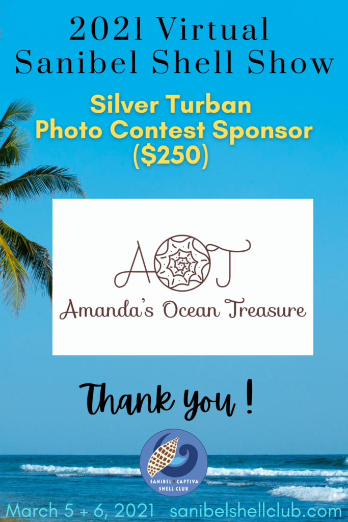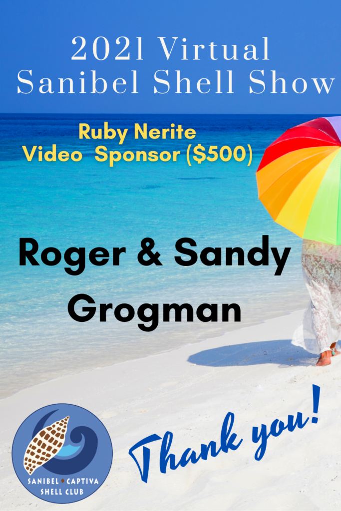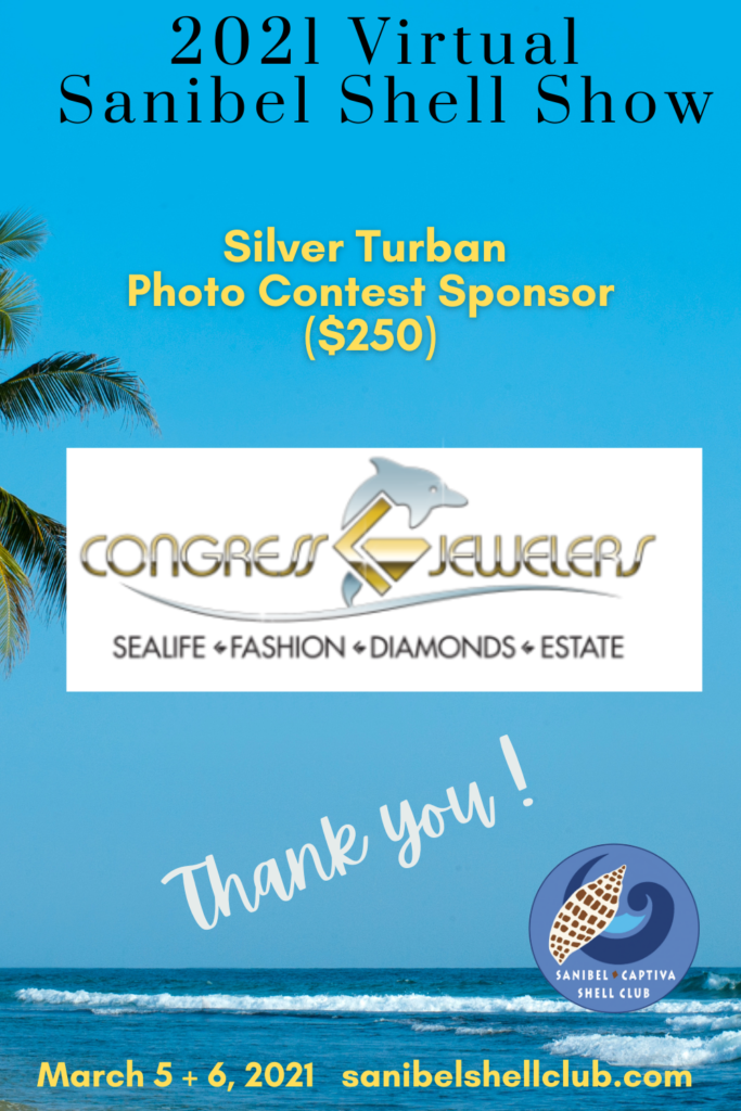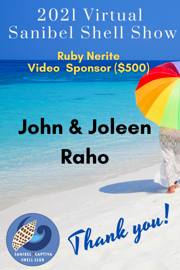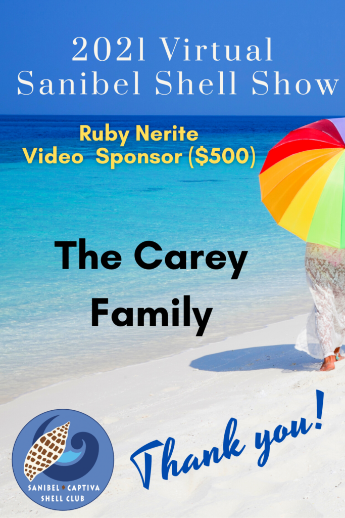 The Virtual 2021 Sanibel Shell Show will be March 5+6, 2021 on our club’s YouTube channel. THANKS SO MUCH to these generous and loyal sponsors!