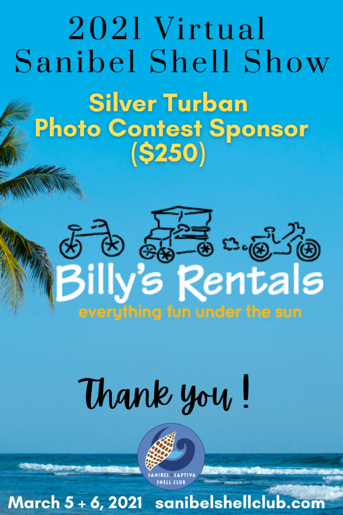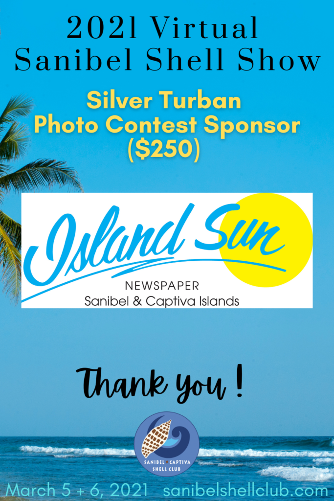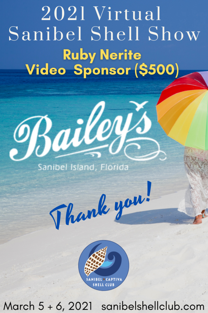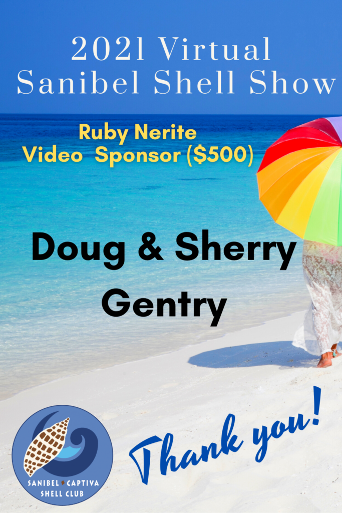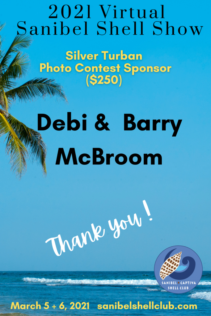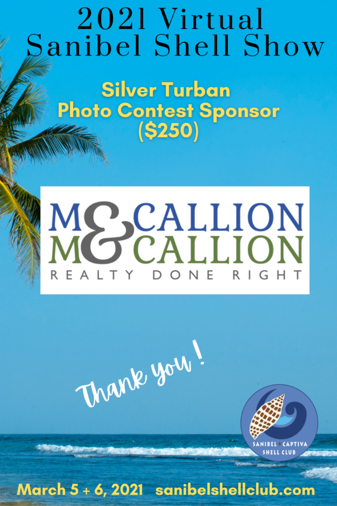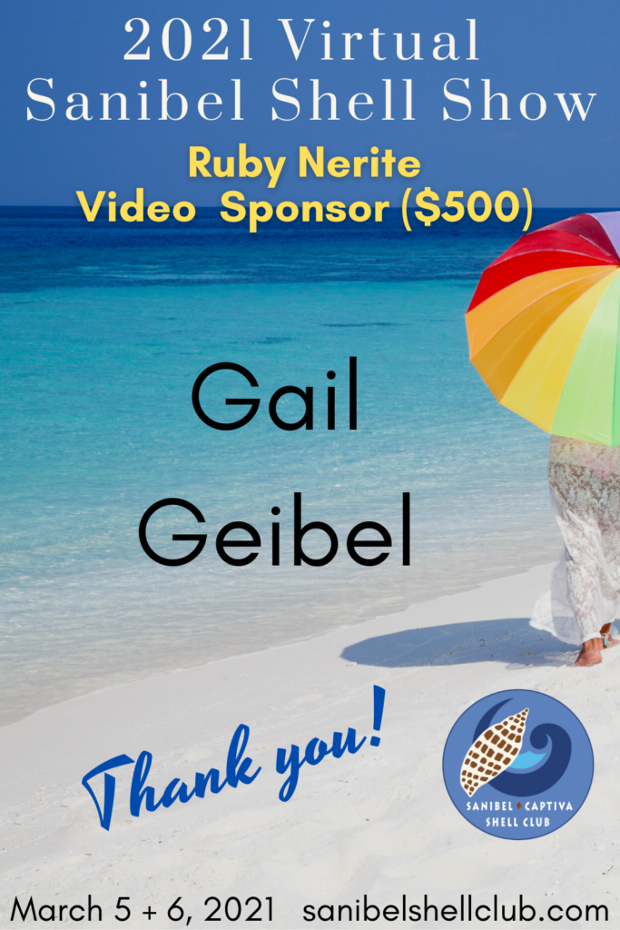The Virtual 2021 Sanibel Shell Show will be March 5+6, 2021 on our club’s YouTube channel. THANKS SO MUCH to these generous and loyal sponsors!