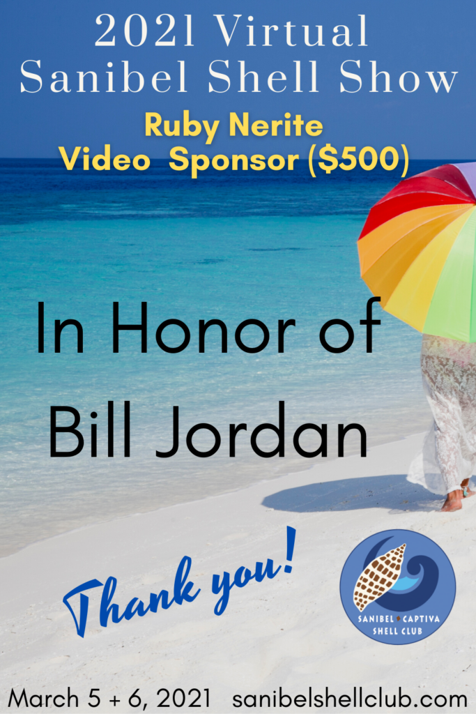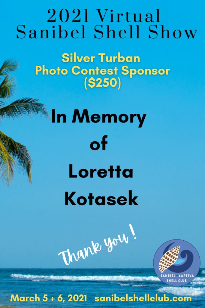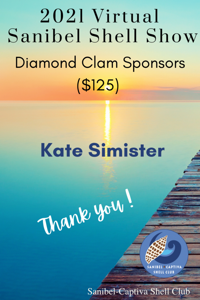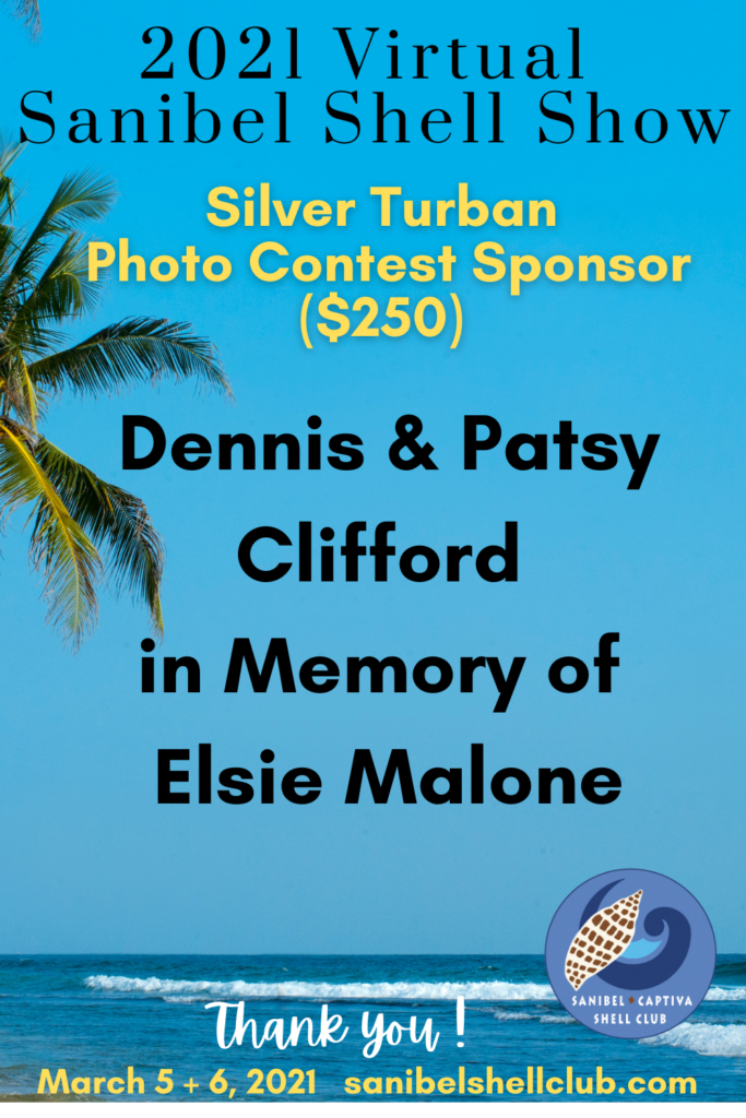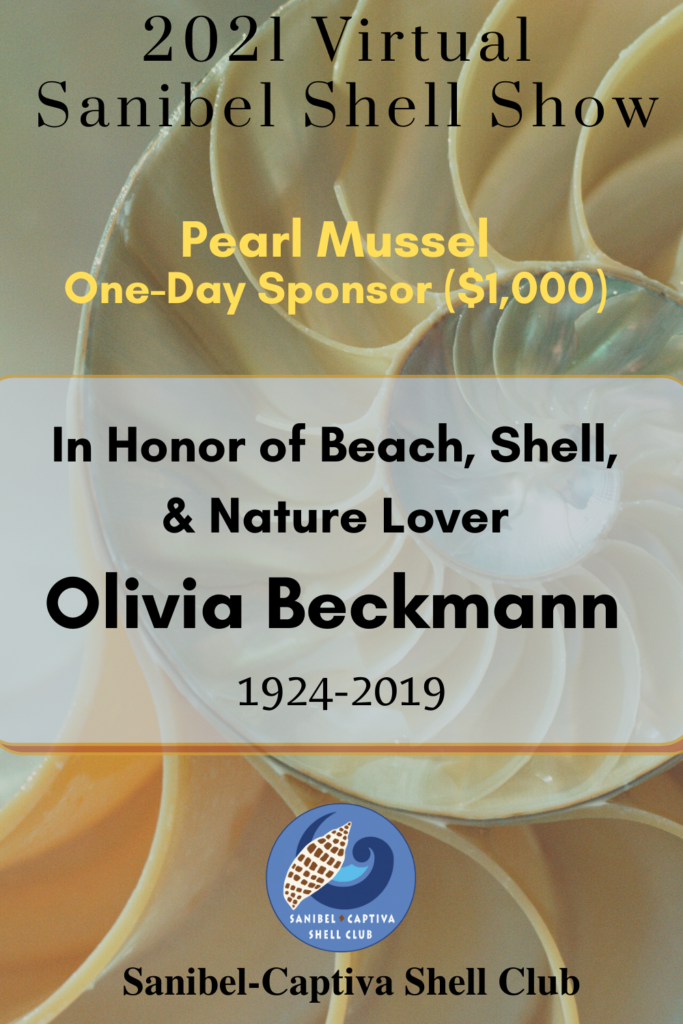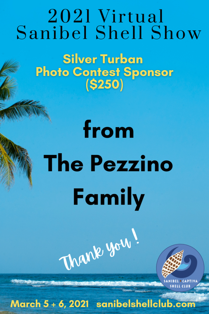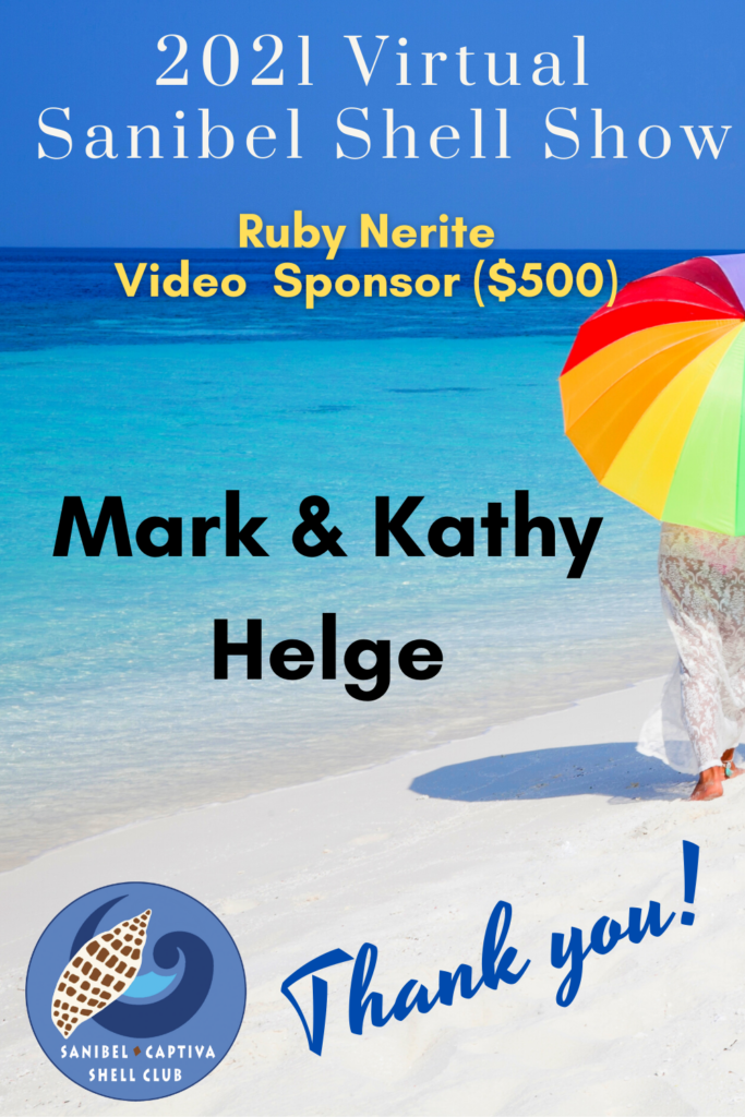 The Virtual 2021 Sanibel Shell Show will be March 5+6, 2021 on our club’s YouTube channel. THANKS SO MUCH to these generous and loyal sponsors!