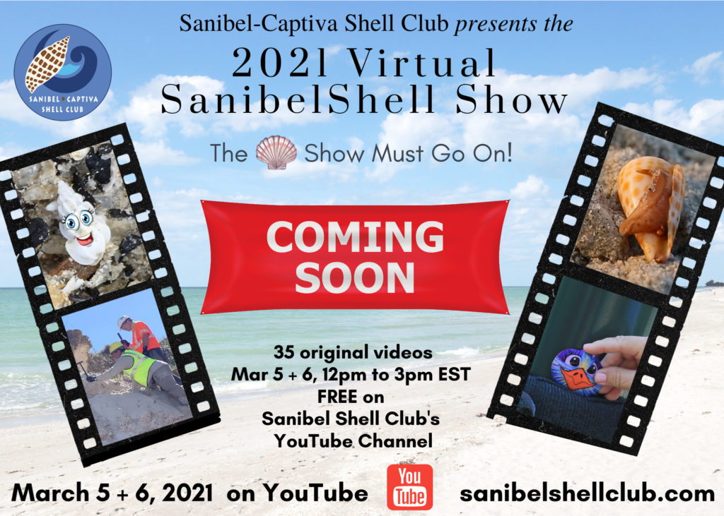 Thank you. It’s sad that the in-person judged Sanibel Shell Show is cancelled this year, but what a great way for everyone around the world to be able to see a virtual Sanibel Shell Show from their own homes. We’re featuring many excellent videos, including History of the Sanibel Shell Show, Recollections of Past Shell Shows, and an Overview of a “Normal” Sanibel Shell Show. You’ll get a real feel for what this famous shell show is all about. See you on YouTube Mar 5+6.