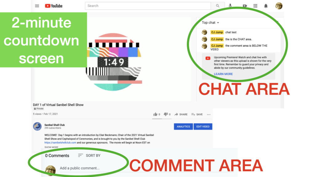 On our YouTube channel home page, you will see Day 1 and Day 2 thumbnails which will look like this (see below) displaying the word PREMIERE before the show begins. After the Virtual Shell Show is over, these two show videos will be available to watch anytime.