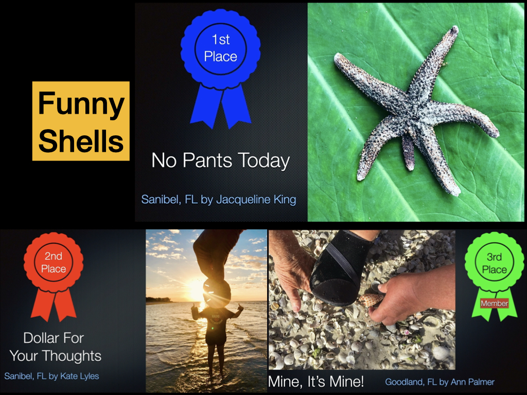 And thank you to Sanibel Seashells (seashells.com) for sponsoring the People’s Choice Award and all the other prizes. If you’re on Sanibel, stop by their beautiful shell shop and visit their online store too.