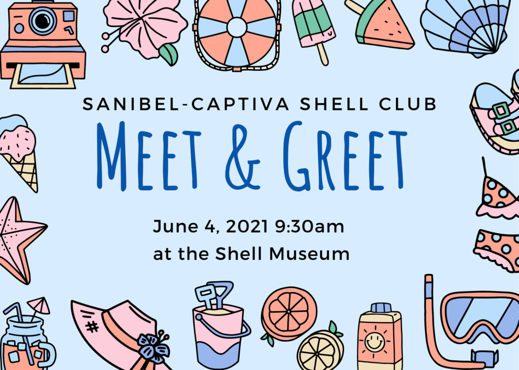 If you are still in the area, you are invited to our June “Sanibel Shell Club Meet & Greet” at the Bailey-Matthews National Shell Museum.  We will gather at the tables outside the front door of the Shell Museum on Friday, June 4th at 9:30 AM.