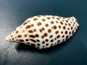 The shell is one of legendary status.   It is not particularly rare, but because of its beauty and importance among tribal societies in the South Seas, Peter Dance included it in his book, “Rare Shells”.  This specimen is approx. 90 mm in length and has no data.