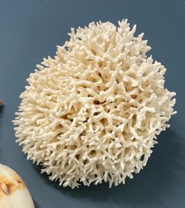This large coral piece is intricately delicate and quite stunning.  What a gorgeous addition to any coastal home. It measures approx. 7 inches in height and 11.5 inches in length.