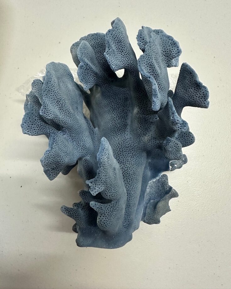 This coral is not dyed. The genus Heliopora is unique in that it extracts iron from seawater that forms into a blue salt that is incorporated into its skeleton. They thrive only in the tropics of the Indo-Pacific oceans. For those of you who are artists, you’ll notice its species name, coerulea (Latin for “sky blue”) is the derivative of the beautiful blue pigment we call cerulean blue. This coral is not dyed. The genus Heliopora is unique in that it extracts iron from seawater that forms into a blue salt that is incorporated into its skeleton. They thrive only in the tropics of the Indo-Pacific oceans. For those of you who are artists, you’ll notice its species name, coerulea (Latin for “sky blue”) is the derivative of the beautiful blue pigment we call cerulean blue.