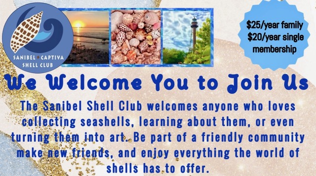 The Sanibel-Captiva Shell Club invites anyone interested in collecting and studying seashells, learning about the mollusks that create them, and exploring shells as an art form to join the club. It’s a wonderful way to connect with others who share these interests.